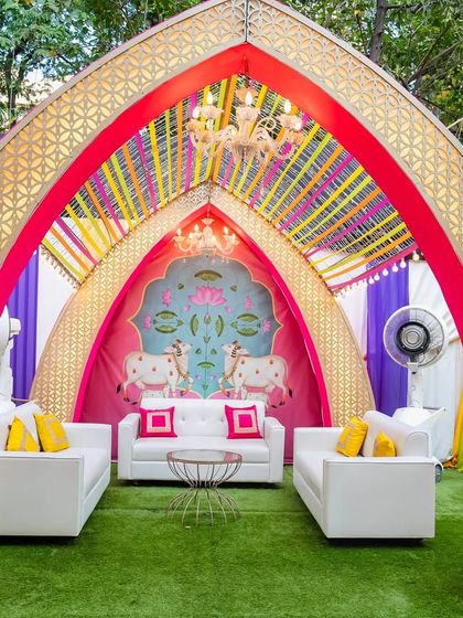 We specialize in creating immersive events using the timeless beauty of Pichwai art and Vrindavan themes. These setups are perfect for religious ceremonies, baby showers, and Garba nights, featuring elements like Radha-Krishna backdrops, sacred cow motifs, and vibrant, story-telling visuals.