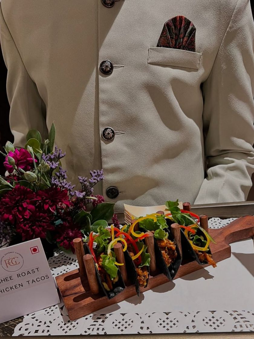 We design custom menus featuring a fusion of global flavors and traditional favorites. Our appetizers range from modern creations like Ghee Roast Chicken Tacos and Edamame Galauti to classics like Palak Patte ki Chaat, all presented with creative flair.