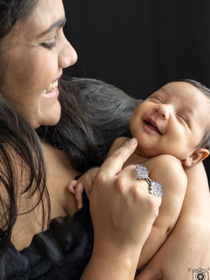 Hey, I’m Shalaka – some say photographer, I say fotosmith. I’m hooked on capturing those tiny, blink-and-you-miss moments: a mother’s glow, a baby’s yawn, chubby cheeks, giggles. Babies grow up so fast, right? I started this to freeze those little miracles, so you can hold onto them. I’m all about fun themes too – a baby as little Kanha for Janmashtami? Pure joy. Whether in my studio or your home, comfort and safety come first.