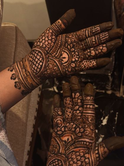 My specialty is creating dense, intricate mehendi that covers the hands and arms, perfect for your big day. I combine traditional Indian motifs with contemporary patterns for a unique bridal look.