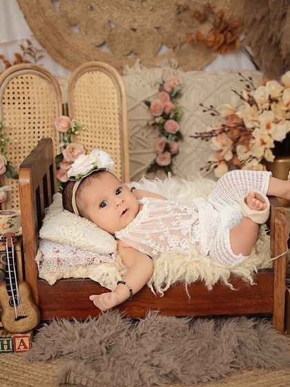 We provide all props, themed setups, and styling elements. Sessions can be done in our studio or at your home, ensuring your baby's comfort. Each shoot is carefully planned to capture both candid moments and styled portraits.