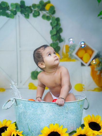 Let's bring your vision to life with a creative photoshoot for any milestone. I offer a variety of fun themes and props, including outdoor setups with picnic baskets and musical instruments, or playful studio sessions with cars, tubs, and fairy wings.