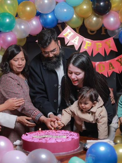 I capture the joy of this major milestone, from the grand cake-cutting moment with family to the small, candid smiles. I specialize in documenting the entire celebration, including themed decor like Cocomelon parties and classic balloon setups.