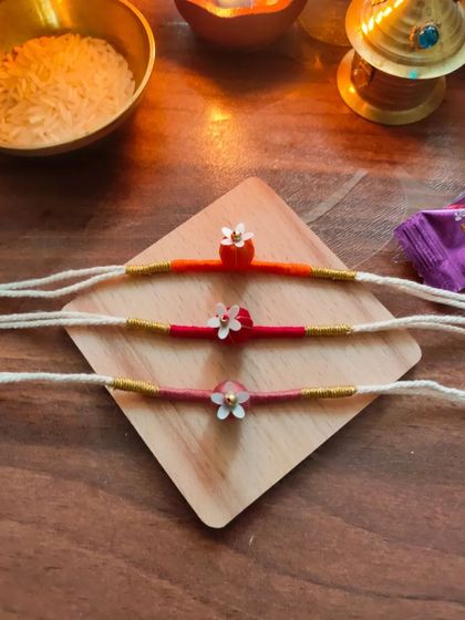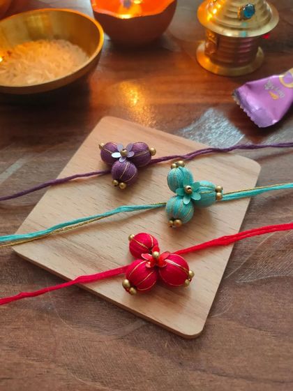 We create unique, handcrafted Rakhis using colorful threads, beads, and traditional motifs. Each piece is carefully designed to celebrate the special bond between siblings during Raksha Bandhan.