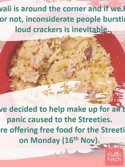 We cook and supply fresh rice and chicken meals for street dogs, with easy pickup or free local delivery and bulk options for community feeders.