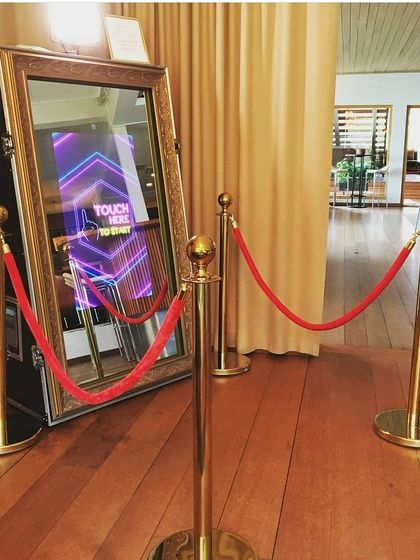 - Mirror selfie booth rental: Looks like a mirror, acts like a touchscreen, throws up animations, and gets everyone posing.