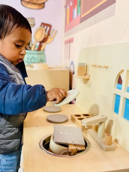 I created a special place for the littlest visitors. This area includes soft play structures, a sensory pit with non-sand material that's safe and fun, and our popular mini play kitchen and dressing room for hours of imaginative role-playing.