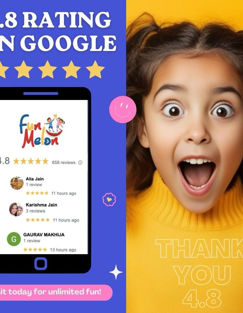 Every party booking includes unlimited playtime in Delhi's biggest indoor play area. My facility is packed with activities like multi-level slides, trampolines, ball pits, carousels, and even modern VR and interactive projection games to keep kids of all ages engaged.