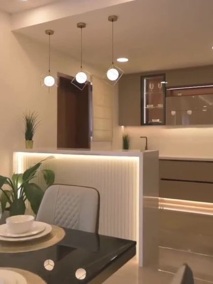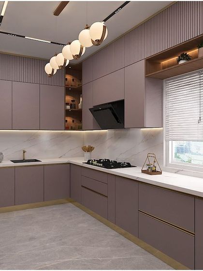 Modern homeowners seeking luxurious, functional kitchen spaces in apartments or villas, particularly those who value both aesthetics and practicality in their cooking area.