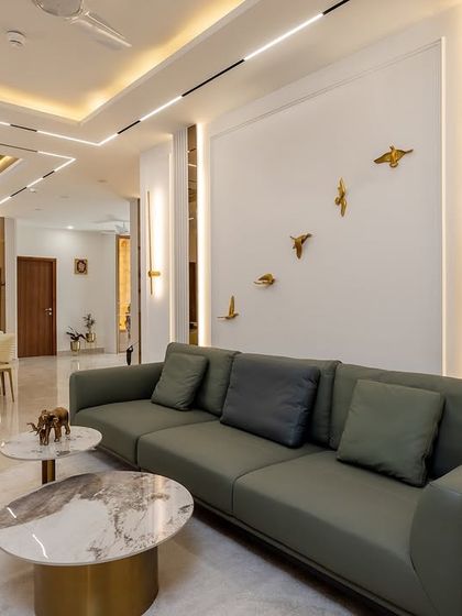 - Living & Dining: Open plan living room ideas are my jam. Things like false ceilings, chandeliers, and custom TV units with hidden storage. I love using mirrors to make spaces feel bigger and adding accent walls for a bit of drama.