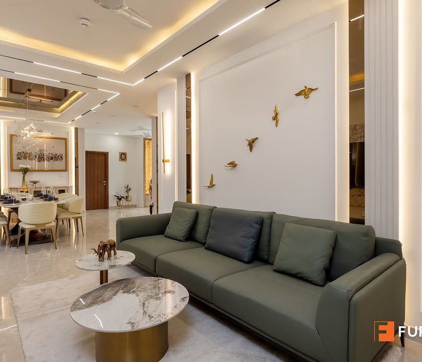 We specialize in creating open and inviting living and dining areas that serve as the social heart of the home. Our designs focus on maximizing space and light, incorporating elements like statement chandeliers, custom TV units with integrated storage, and elegant furniture arrangements for a perfect blend of comfort and sophistication.