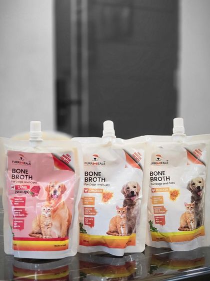 We offer a premium bone broth made from high-quality chicken bones, packed with essential nutrients, collagen, and amino acids. Our preservative-free broth is specially formulated to support joint health, boost immunity, and aid digestion in dogs.