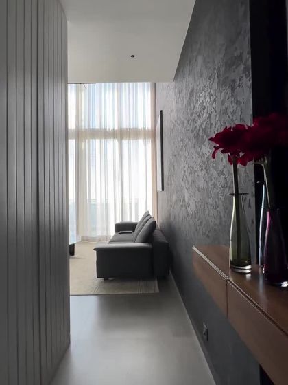 This award-winning 3,000 sq ft duplex apartment was designed as a serene, clutter-free sanctuary. We used a consistent palette of greys, exposed concrete, and natural textures to create a seamless flow, embracing the philosophy of 'less is more' while ensuring every corner is warm, functional, and full of character.