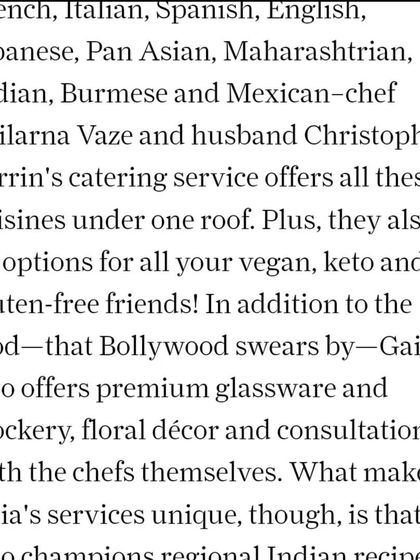 Don't just take our word for it. We are incredibly proud to have been featured in publications like Condé Nast Traveller as one of Mumbai's best caterers. Read what the press and our amazing clients have to say about the Gaia Gourmet experience.