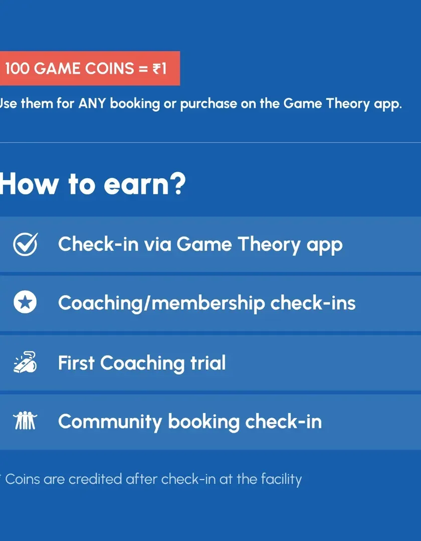 At Game Theory, you never have to play alone. Our platform connects you with a vibrant community of sports enthusiasts, allowing you to find players at your skill level, join competitive matches, and earn rewards like Game Coins with every check-in.
