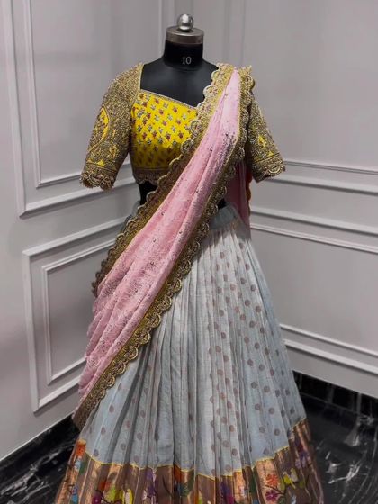 My designs extend beyond bridal wear to include a range of outfits for all your special occasions. This collection features contemporary half-sarees, elegant reception gowns, and modern lehengas, perfect for sangeets, festivals, and parties. I also specialize in transforming cherished old sarees into stunning new creations.
