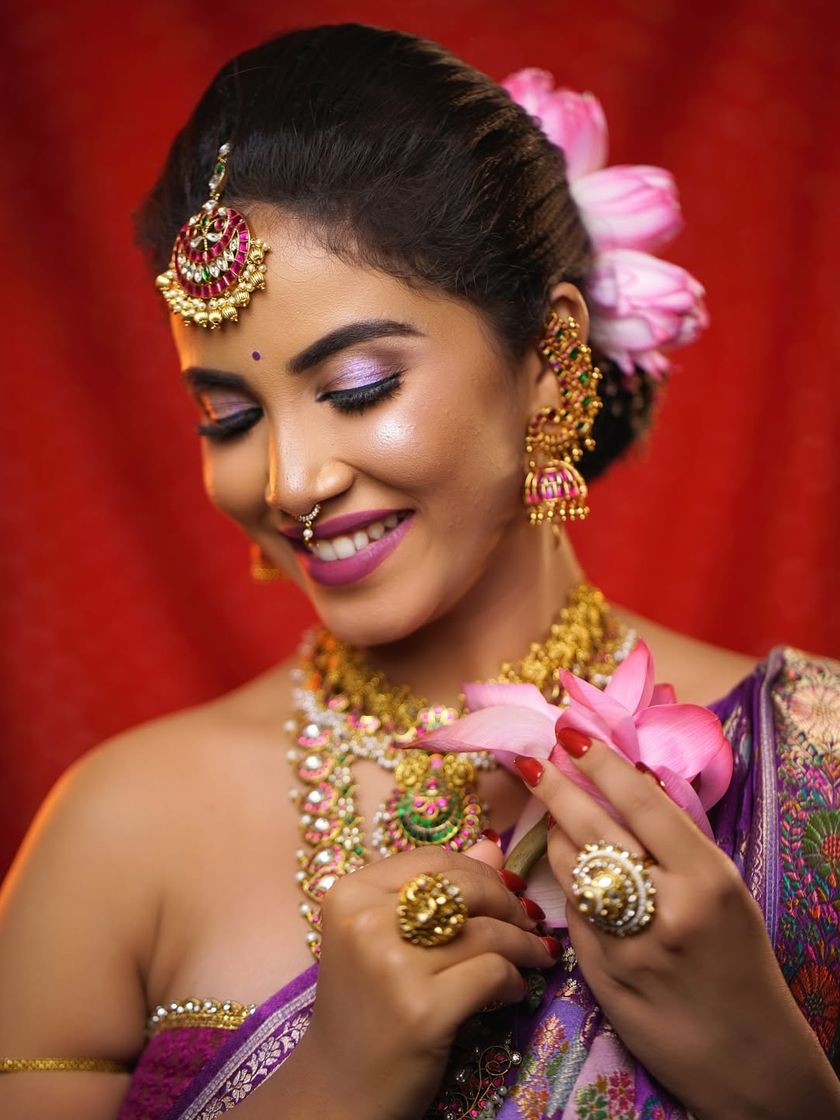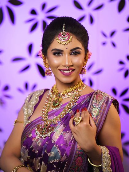 This is the first collection of visuals a potential client will see. It is curated to showcase my expertise, the quality of my work, and the range of styles I offer, starting with my signature South Indian bridal hairstyles.