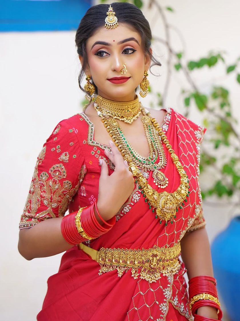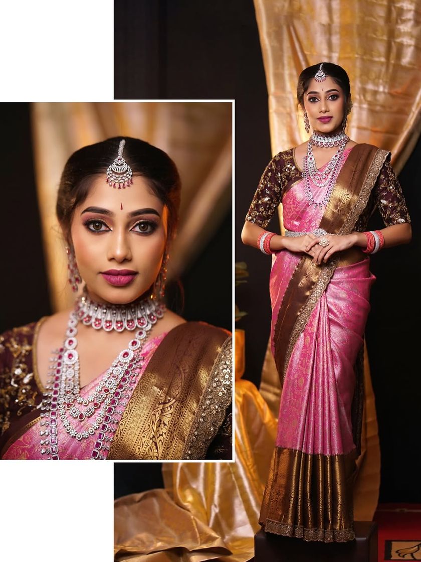 My main focus is draping heavy Kanjivaram and silk sarees for a bride's muhurtham look. I ensure the drape is secure and comfortable, sitting perfectly with heavy jewellery and lasting through the entire ceremony.