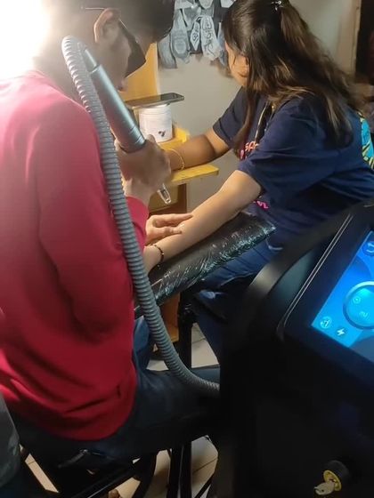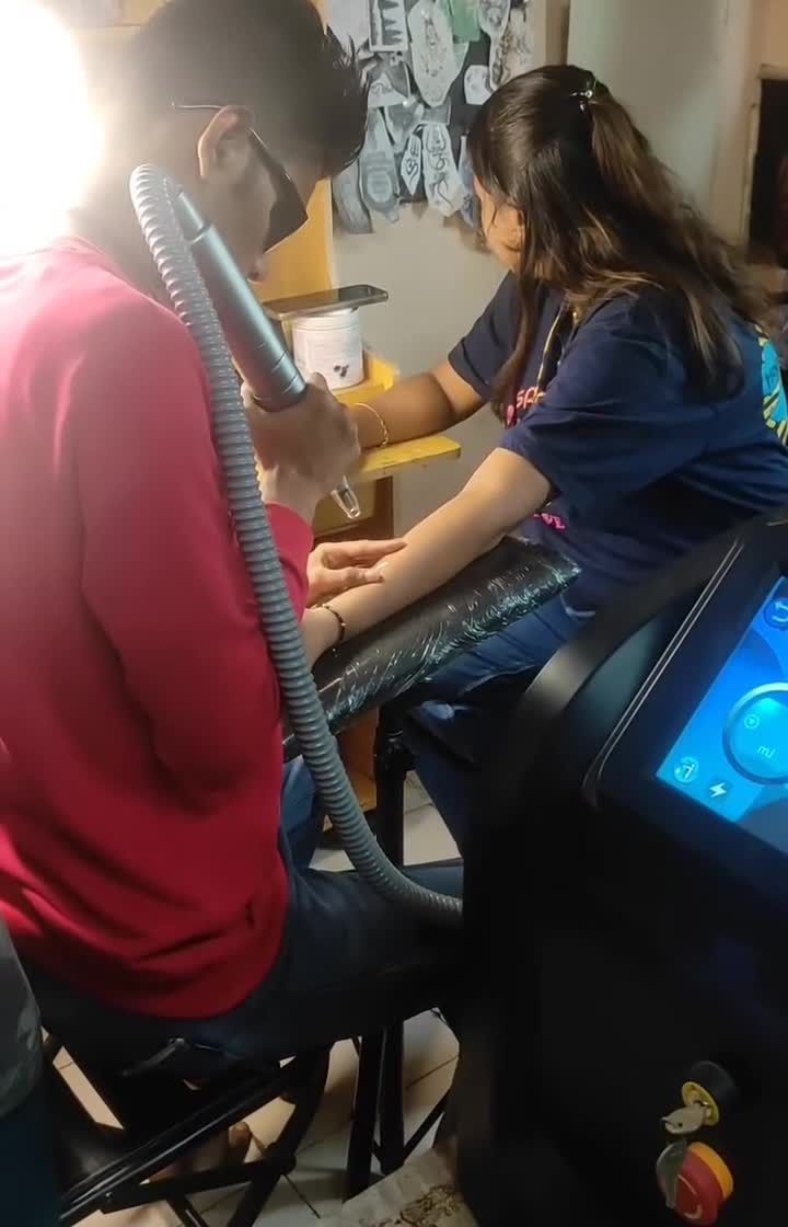 This is how I remove unwanted tattoos. The videos show my handheld laser targeting the ink; it's a precise process that usually requires a few sessions to achieve the best results.