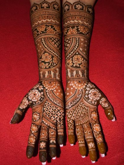 We are a team of 25+ celebrity mehandi artists available 24/7 across India. We use 100% natural henna with a full colour garantee and provide free home service in Mumbai.