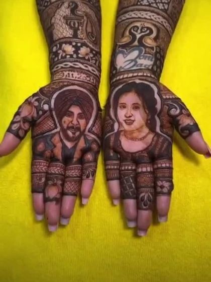 I create custom bridal mehandi with your story, use only natural henna, guarantee dark colour, and offer home service anywhere in India or abroad.