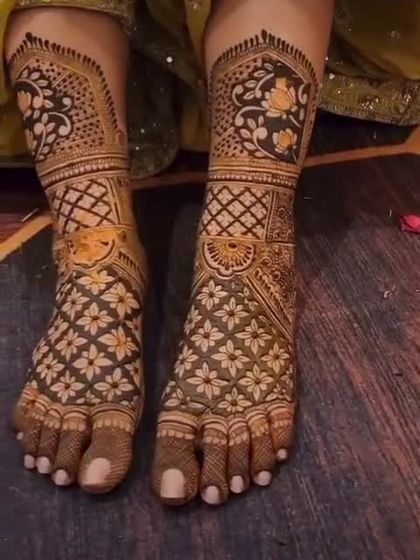 Don't forget your feet! I create beautiful and elaborate mehandi designs for the feet that complement your bridal look. From traditional patterns that cover the entire foot to more modern and minimalist ankle designs, I can create the perfect style for you.