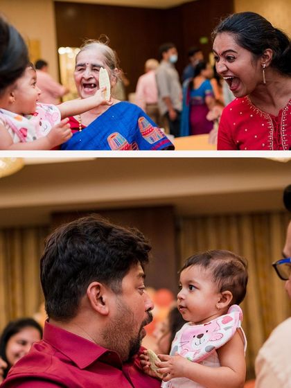 Namaskara! We’re Gayathri Pramod Photography. Been at this for over 11 years now, and honestly, it’s not just a job for us – it’s pure joy. The best part? Families keep coming back, from their shaadi (wedding) to baby’s naming, and even house warming. Seeing our photos hanging on your walls, making your home warmer, that’s what keeps us going. Nikon influencer badge is cool, but those happy tears when you open your albums – that’s the real reward.