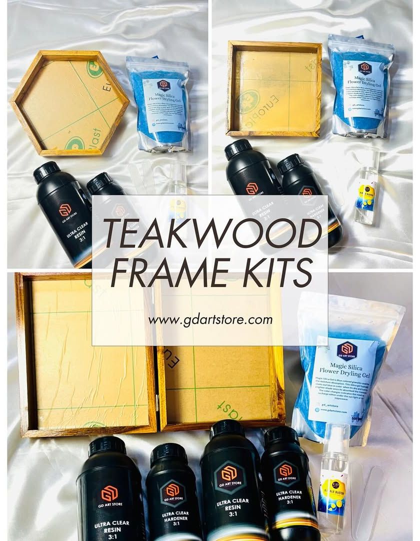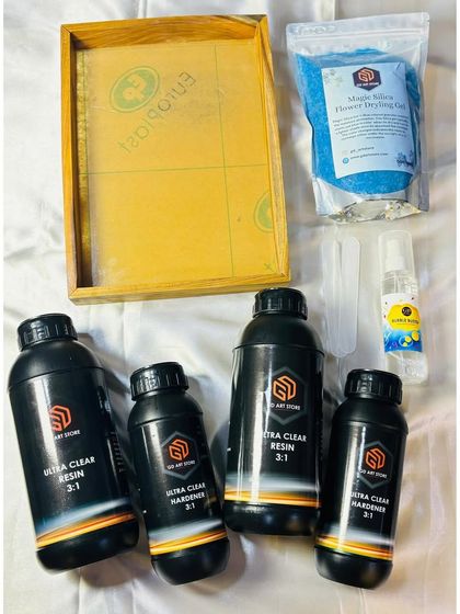 Our beginner-friendly kits have everything you need to start your resin art journey. Each kit includes a teakwood frame, our Ultra Clear resin and hardener, magic silica gel for drying flowers, and other essential tools.