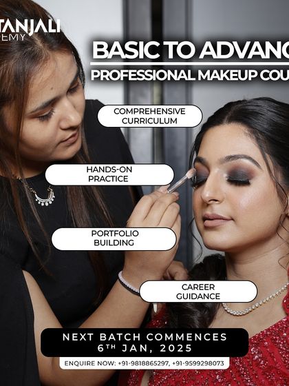 We teach makeup from basics to advanced with hands-on practice on real people, cover all key techniques, and help you build a portfolio for real industry jobs.