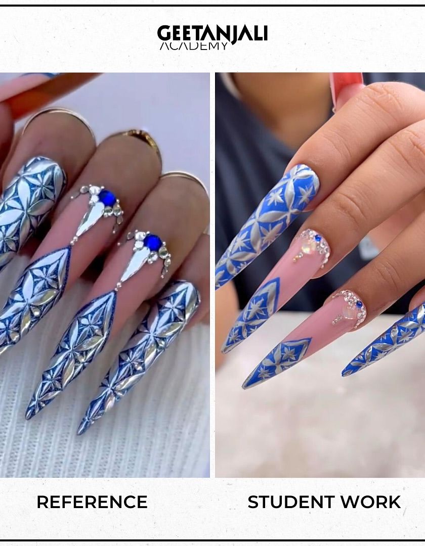 This is the first look into the world of professional nail artistry we offer. We've selected these visuals to showcase the incredible skill, supportive environment, and successful outcomes you can expect at Geetanjali Academy. From intricate student work to our hands-on training approach, this is where your career transformation begins.