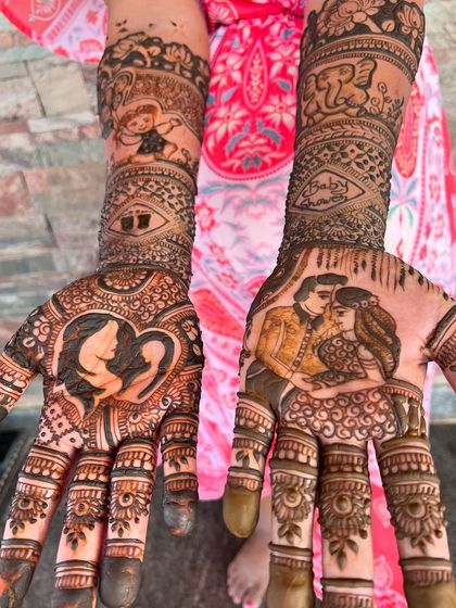 I love creating mehendi that tells a personal story. From portraits of the bride and groom to skylines of meaningful cities or symbols of your journey together, I can design something truly unique that you will cherish.