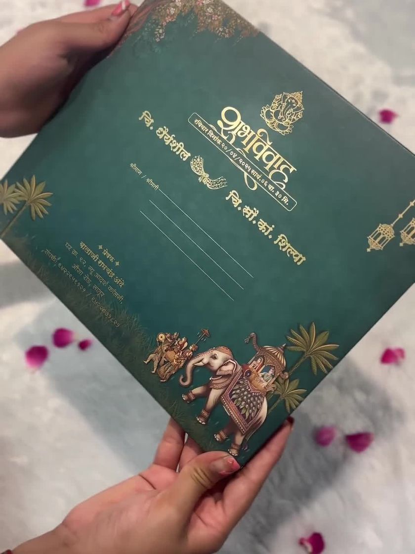 This collection is for couples who dream of a grand, regal wedding. I specialize in creating invitations with intricate illustrations of palaces, majestic elephants, and classic motifs that reflect the richness of Indian traditions. These hardback cards often feature gold foil, velvet finishes, and storybook-style inserts.