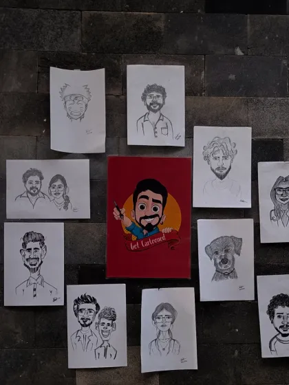 Hey! We’re GetCartooned from Bangalore. Our thing? Making people smile with handdrawn art. Every sketch is done by hand, no shortcuts, no digital tricks. The best part isn’t just drawing – it’s meeting all kinds of people. Like that army doctor, wow, 45 years of service! Or the 80-year-old dude with crazy energy – legends. Seeing folks light up when they get their caricature… that’s the real reward. We sketch everyone: kids, couples, pets, you name it.