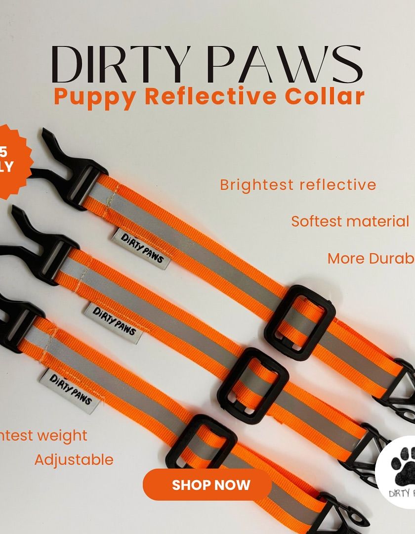 I make a special version of my reflective collars just for puppies and smaller dogs. They are extra lightweight and adjustable to fit comfortably as your little one grows, without compromising on brightness or safety.