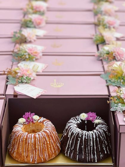 I design my gift boxes and hampers to be a complete experience of joy and indulgence. From single dessert bowls to assorted party boxes and twin cake sets, each package is thoughtfully assembled and can be customized with ribbons, tags, and fresh flowers to make your gift truly memorable.