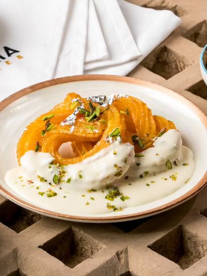 End your celebration on a sweet note with our exquisite desserts. We offer everything from live halwa counters with unique flavors like Mirch ka Halwa to innovative fusion creations like Paneer Jalebi and Doda Barfi Tarts.