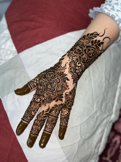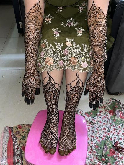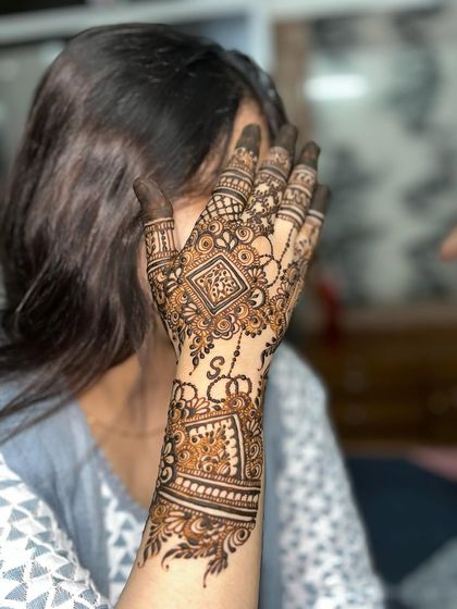 dulhan) mehndi is my main thing. I love working on intricate bridal mehndi patterns, covering hands, arms, and feet. If you want your wedding date or initials hidden in the design, just tell me. - For parties, Eid, or engagements, I can do anything from bold Pakistani-style mehndi designs to simple floral bands.