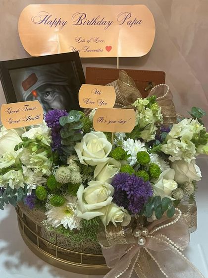 We create personalized floral arrangements in baskets, boxes, crates, and more, with options to add names, photos, and gifts for any occasion, including last-minute orders.