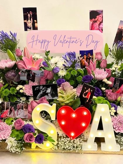 The best part? Personalization. Want a glowing initial or your name right in the flowers? We do that. Sneak in some photos? Easy. Add chocolates, scented candles, or even mithai (Indian sweets)? No stress - we make personalized flower hampers that actually feel personal.