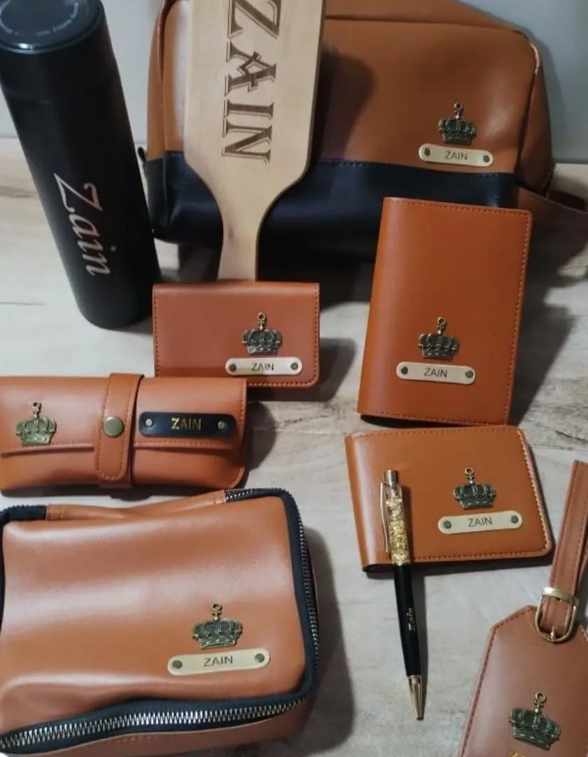 We offer a range of high-quality faux leather items that can be personalized with names and charms. These are perfect for creating sophisticated and practical gift sets. Our collection includes wallets, passport covers, luggage tags, pouches, and sunglass cases, available in various colors.