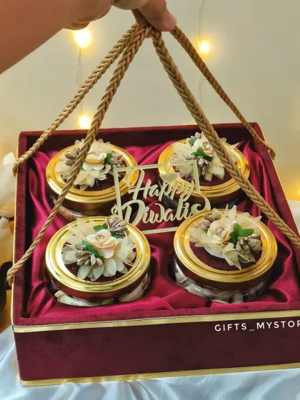 - Loads of packaging options: wooden boxes, velvet boxes, eco-friendly jute bags, golden baskets, and more.