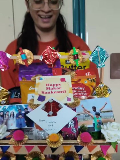I love celebrating all festivals! For Eid, I create special gifts like my popular money towers and personalized Eidi envelopes. I also design unique hampers for other occasions like Makar Sankranti, making sure every celebration has a special, handmade touch.