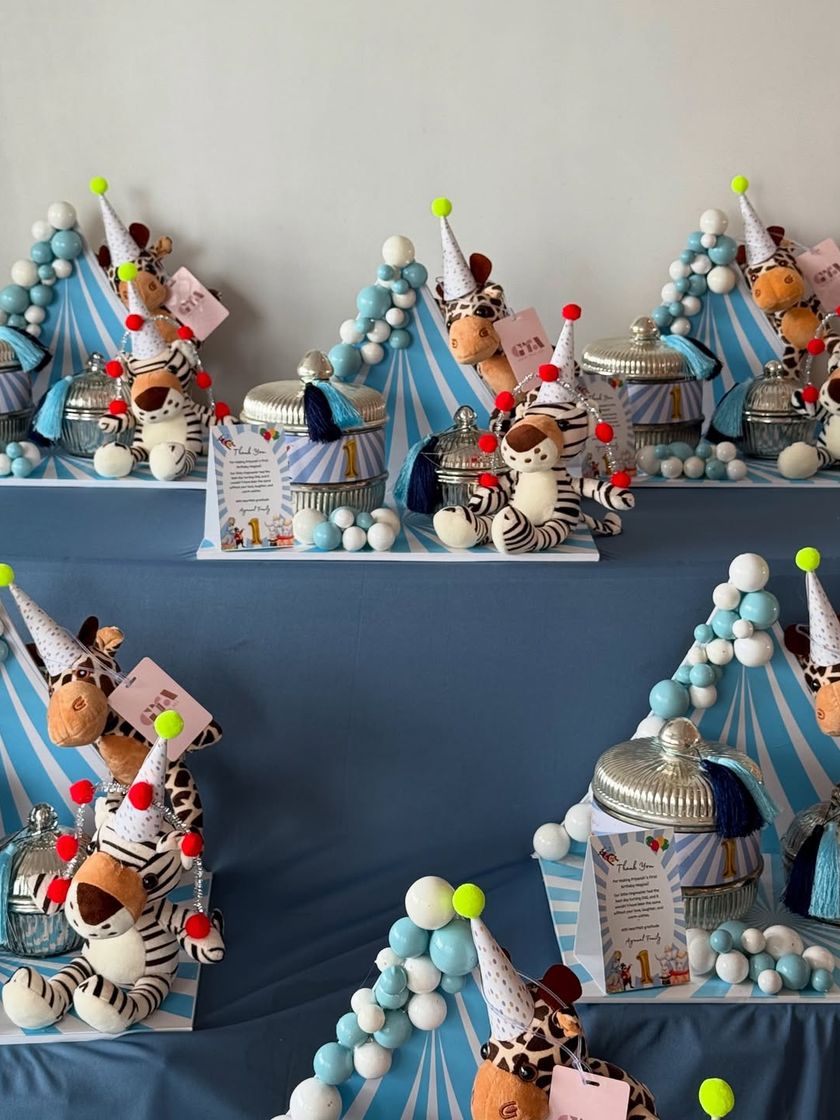 I also create special gifts to mark those important milestones beyond the announcement. From fun circus-themed return favors to 'smash-hit' garage band setups, I can design a memorable gift for any big moment.