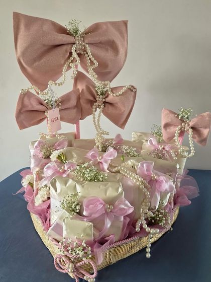 I create custom gifting structures and arrangements that honor family rituals and traditions. Whether it's for a Mameru ceremony or a themed event, I incorporate meaningful elements like Hindi monograms, jasmine garlands, and symbolic motifs to make the occasion truly special.