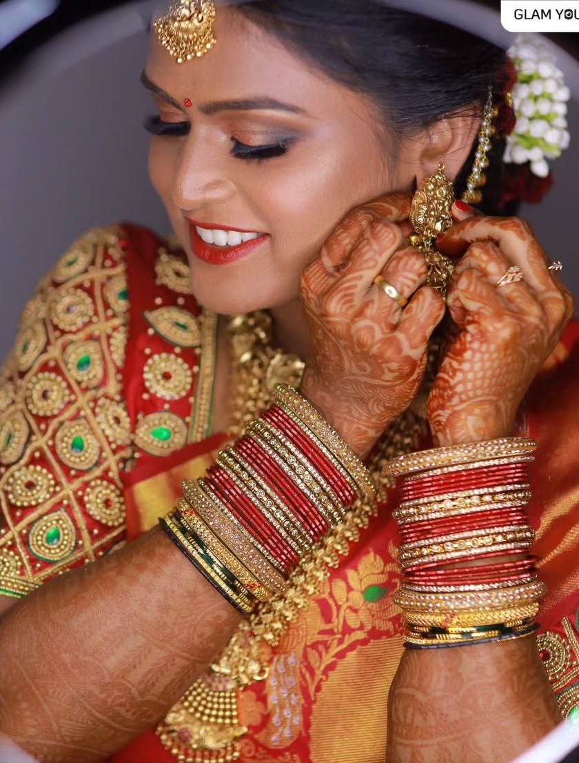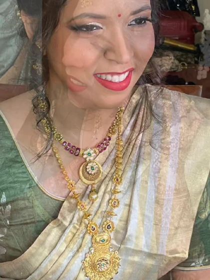 I specialize in creating looks for every South Indian ceremony, from the traditional Muhurtham to the glamorous reception. Whether you desire bold lips and defined eyes or a soft, dewy finish, I ensure your makeup is flawless and lasts through all the rituals.
