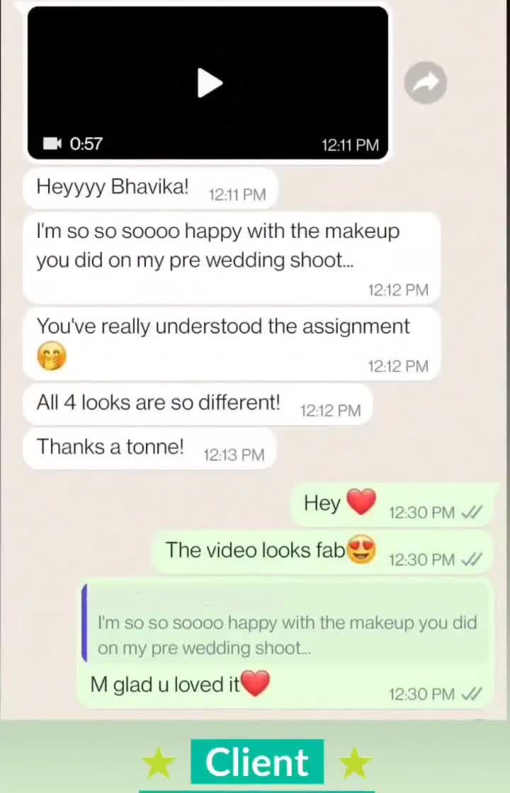 Nothing makes me happier than seeing my clients overjoyed with their final look. Their smiles, confidence, and heartfelt messages are truly overwhelming and are the reason I love what I do.