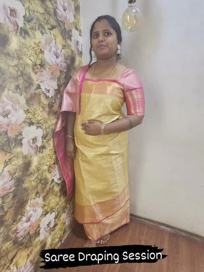 Nanna ishta vishaya saree draping! (Saree draping is my favorite thing!) For me, every saree tells a story. I find joy in making each pleat perfect, whether it's for your big day or just a casual get-together. Sometimes, sarees can be tricky and stressful, but that's where I come in - I’ll make sure you look and feel your best.