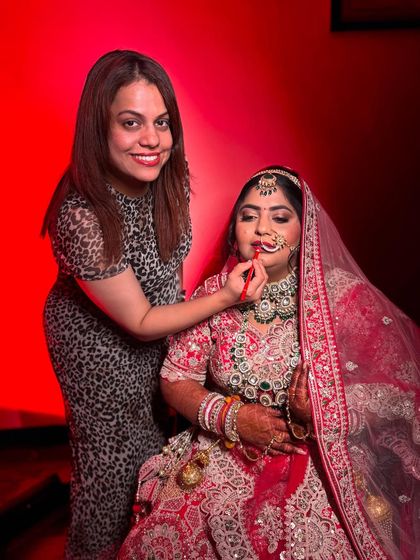 I personally handle every bridal makeover to ensure perfection. This is a glimpse into my process, from the final touch-ups at my Goregaon studio or your venue to the happy moments shared with my brides and their families.