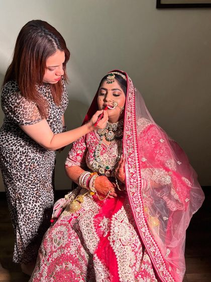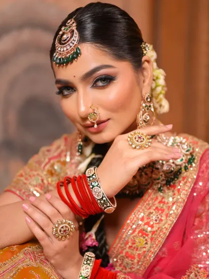 We specialize in creating personalized bridal looks, blending traditional and contemporary styles. Our luxury bridal makeup includes classic red bridal styles, modern glass skin makeup, and culturally specific looks (Punjabi, Rajasthani, Bengali). Services are available for both local and destination weddings.