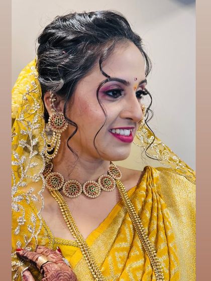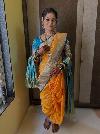 I do makeup, hairstyling, saree draping, and jewellery help for events, with a focus on authentic Maharashtrian bridal looks and making the getting-ready process easy for you.